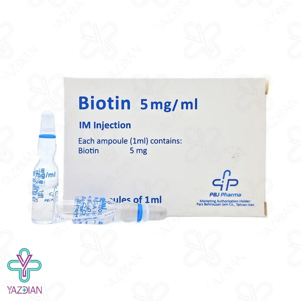 آمپول بیوتین حاوی دوز غلیظی از ویتامین بیوتین است. این آمپولها معمولا برای درمان کمبود شدید بیوتین در بدن تجویز میشوند. کمبود بیوتین میتواند باعث مشکلاتی مانند ریزش مو، خستگی، پوست خشک و شکننده شدن ناخنها شود.