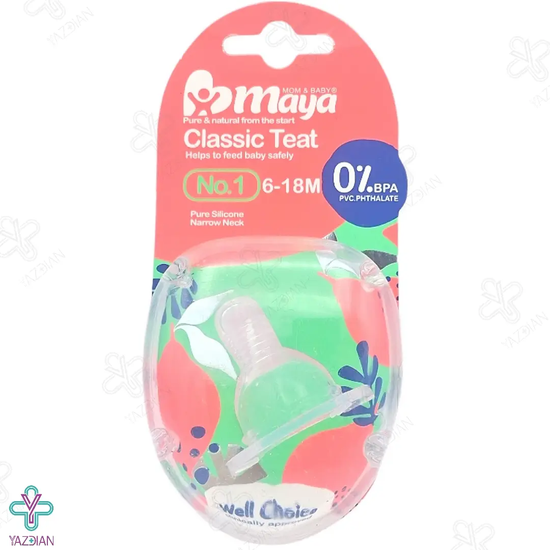 سرشیشه دهانه عریض کوچک ارتودنسی مایا، از سیلیکون شفاف، نرم، بدون طعم و با انعطافپذیری بسیار بالا و بصورت گرد ساخته شده و شباهت زیادی با سینه مادر دارد.