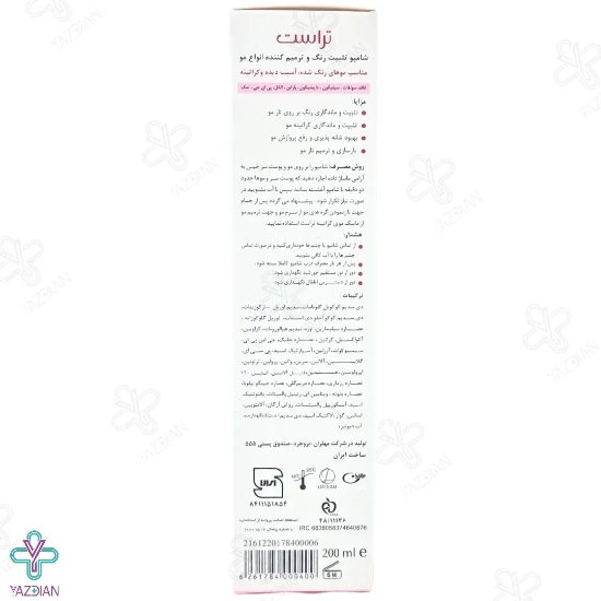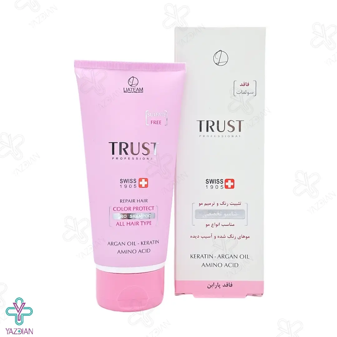 شامپو بدون سولفات تثبیت کننده رنگ و ترمیم کننده مناسب انواع مو تراست - 200 میلی لیتر