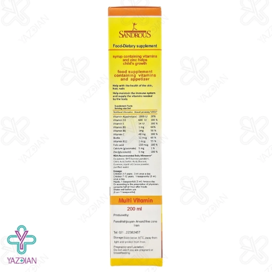 مولتی ویتامین سندروس بهترین مولتی ویتامین برای تامین نیاز بدن کودکان به ویتامین ها و مواد معدنی می باشد مصرف این مکمل باعث تقویت سیستم ایمنی بدن کودکان می شود و تاثیر بالایی در تقویت و رشد قدی کودکان دارد.