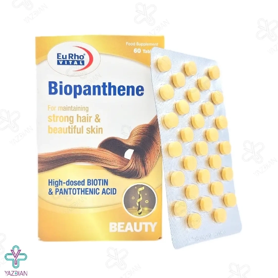 قرص بیوپانتن یک مکمل است که حاوی 5000 میکروگرم بیوتین و 100 میلی گرم پانتوتنیک اسید می باشد که باعث تقویت فولیکولهای مو، سلامت و رشد و کاهش ریزش موها می شود.