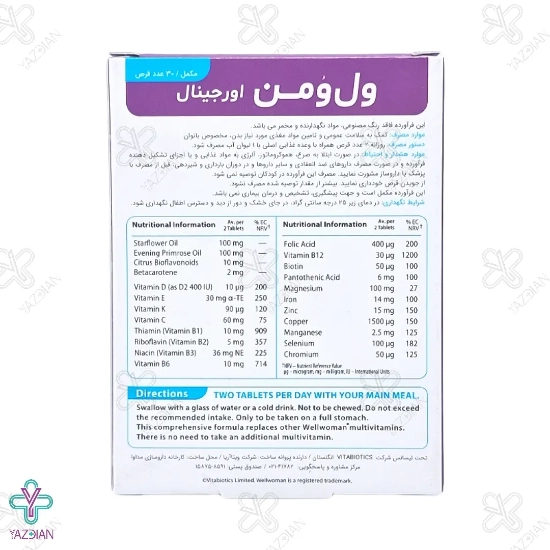 قرص تقویت کننده بانوان ول وومن اورجینال ویتابیوتیکس - 30 عددی