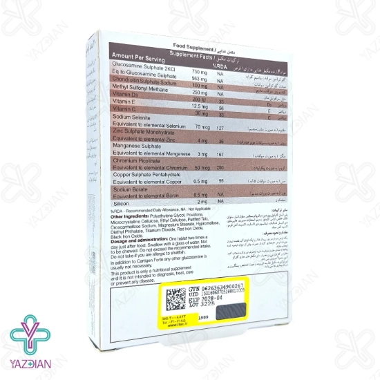 در این محصول از گلوکزآمین سولفات کریستال شده که از بهترین و مؤثرترین نوع گلوکزآمین می باشد استفاده شده است. گلوکزآمین سولفات ساخت گلیکوزامینوگلیکان ها را که باعث تشکیل ساختار غضروفی هستند را تحریک می کند.