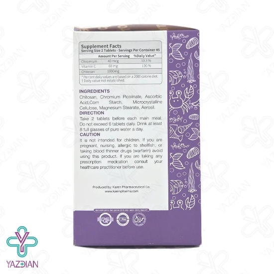 ویژگی های قرص کیتوزان ۵۰۰ کارن