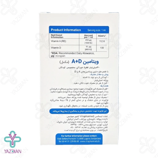 مکمل غذایی ویتامین آد از ترکیب ویتامین آ و ویتامین دی تولید شده که از بدو تولد تا پایان یک سالگی ملزم به مصرف این مکمل غذایی برای کودکان خود هستید. استفاده از مکمل غذایی ویتامین آ د خواص فراوانی برای کودکان به همراه خواهد داشت و سبب سلامتی نوزاد شما در این دوره زندگی خود خواهد شد.