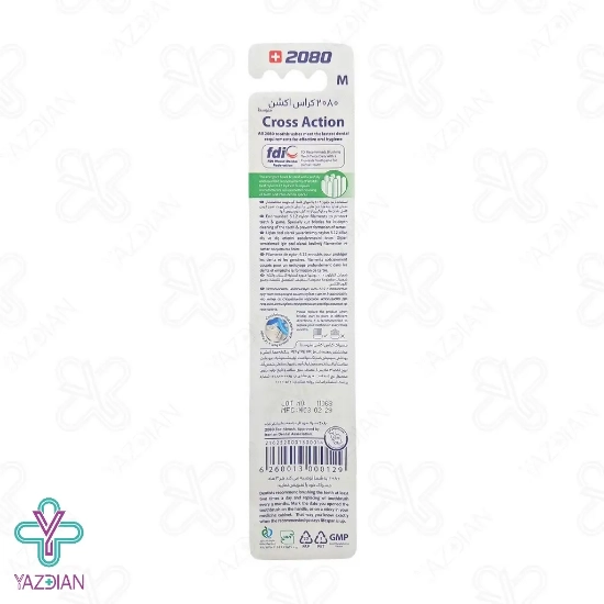 مسواک 2080 مدل Cross Action دارای برسی سخت با نخ های خاص و از جنس نایلون 6.12 می باشد که برای تمیز کردن دندان ها و جلوگیری از ایجاد جرم، محصول مناسبی می باشد.