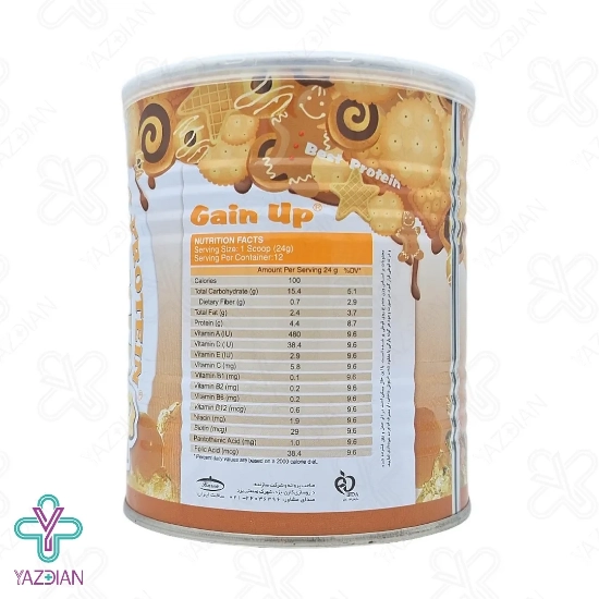 22 درصد پروتئین بر پایه پروتئین آب پنیر در مکمل گین آپ کودکان وجود دارد که این میزان تمامی اسیدهای آمینه ضروری و غیر ضروری بدن را شامل می شود و همچنین از قابلیت هضم وجذب بالایی برخوردار می باشد.