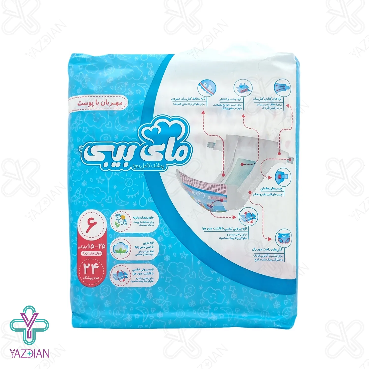 پوشک بچه کامل مای بیبی سایز 6 بسته 24 عددی