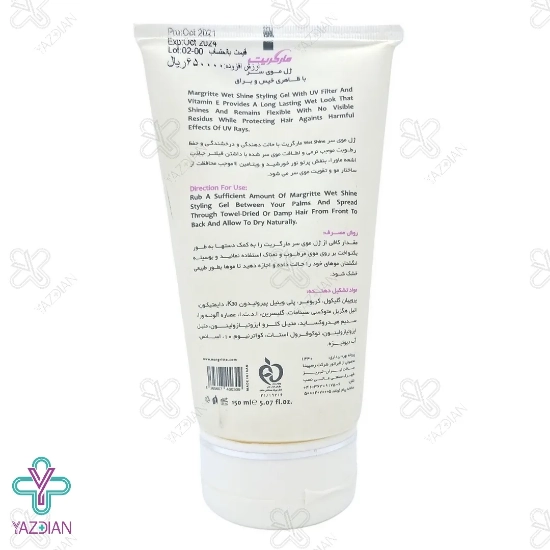 ژل حالت دهنده مو مرطوب مارگریت، حاوی ویتامین E و فیلتر جاذب اشعه ی فرابنفش می باشد که از موها محافظت کرده و رطوبت موها را حفظ و باعث تقویت موها می شود.