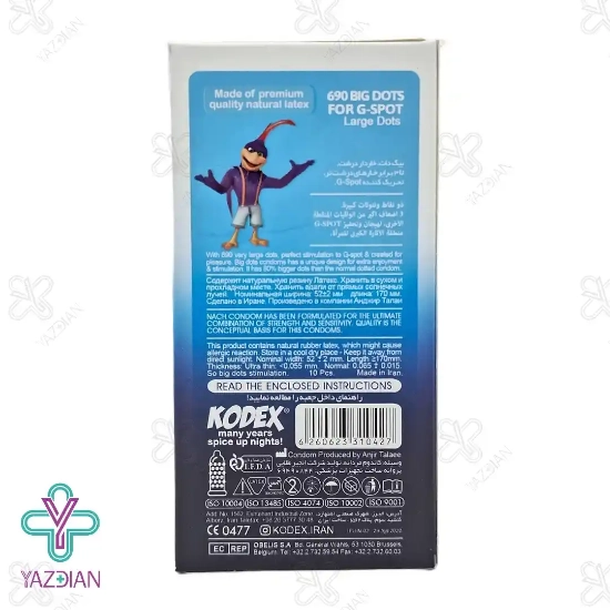 کاندوم خاردار کدکس مدل بیگ داتس کدکس، از جنس لاتکس طبیعی و با کیفیت ساخته شده است که حاوی مواد روان کننده برای تحریک و افزایش میل جنسی زوجین می باشد.