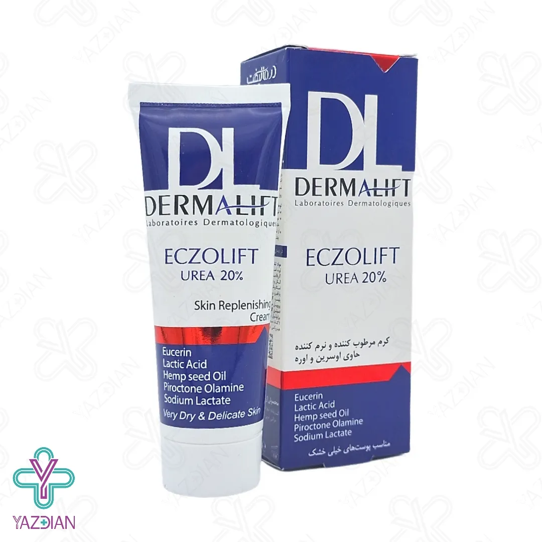 کرم مرطوب کننده و نرم کننده حاوی اوسرین و اوره 20% DERMALIFT EczoLift Urea 10% Intensive Moisturizing Cream، برای رفع خشکی و زبری پوست های خشک و آتوپیک توصیه میشود.
