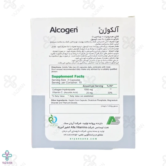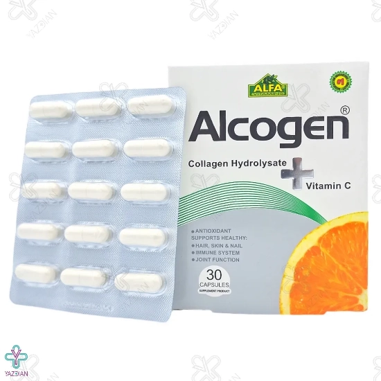 کپسول آلکوژن حاوی کلاژن هیدرولیز شده و ویتامین c است که می تواند در سلامتی پوست، مو و ناخن ها تاثیرگذار باشد.