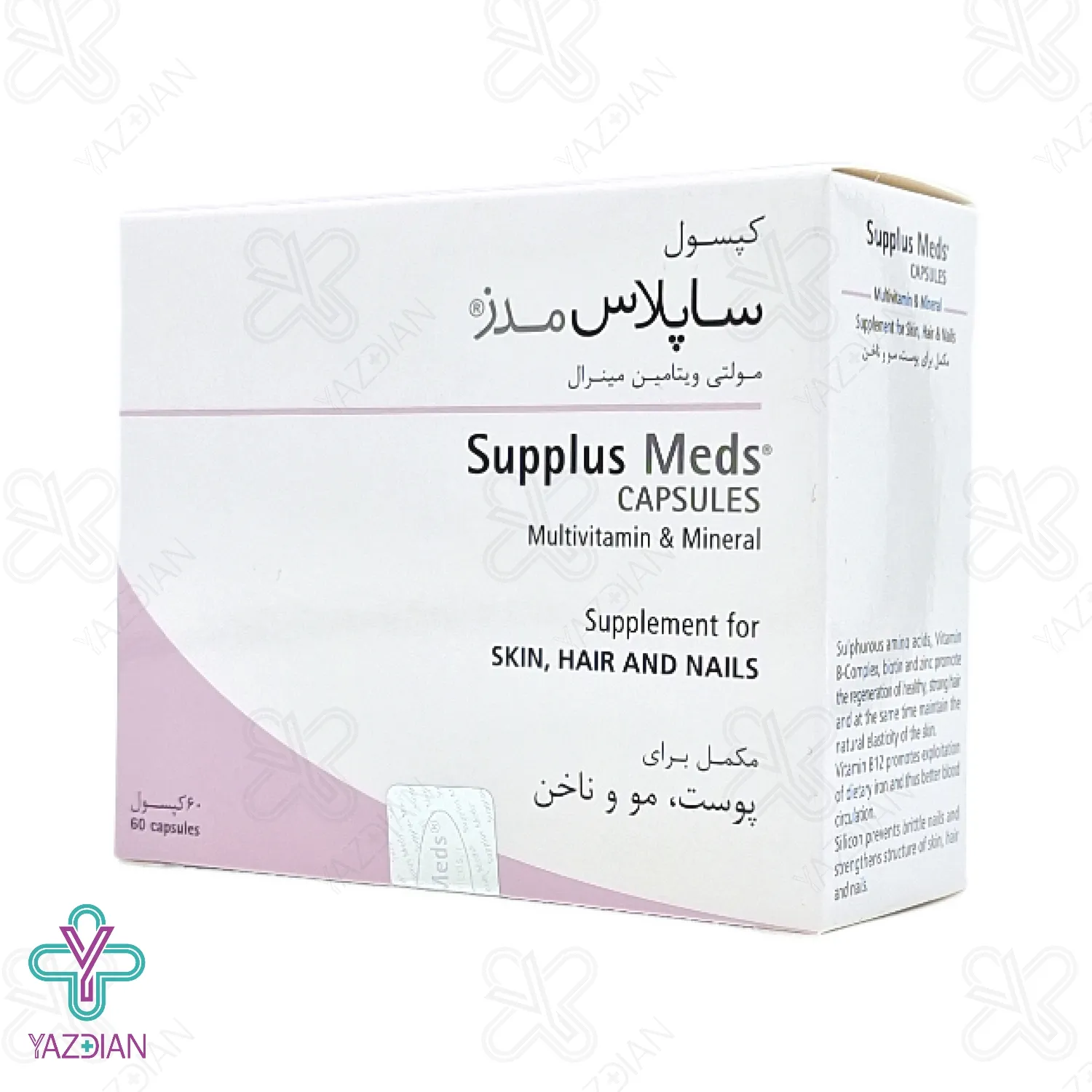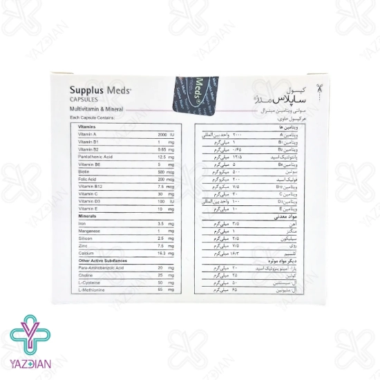 کپسول مولتی ویتامین مینرال ساپلاس مدز دارای فرمولاسیونی جدید می باشد و می تواند تمامی عناصر کمیاب و حیاتی مورد نیاز پوست، مو و ناخن را تأمین کند.