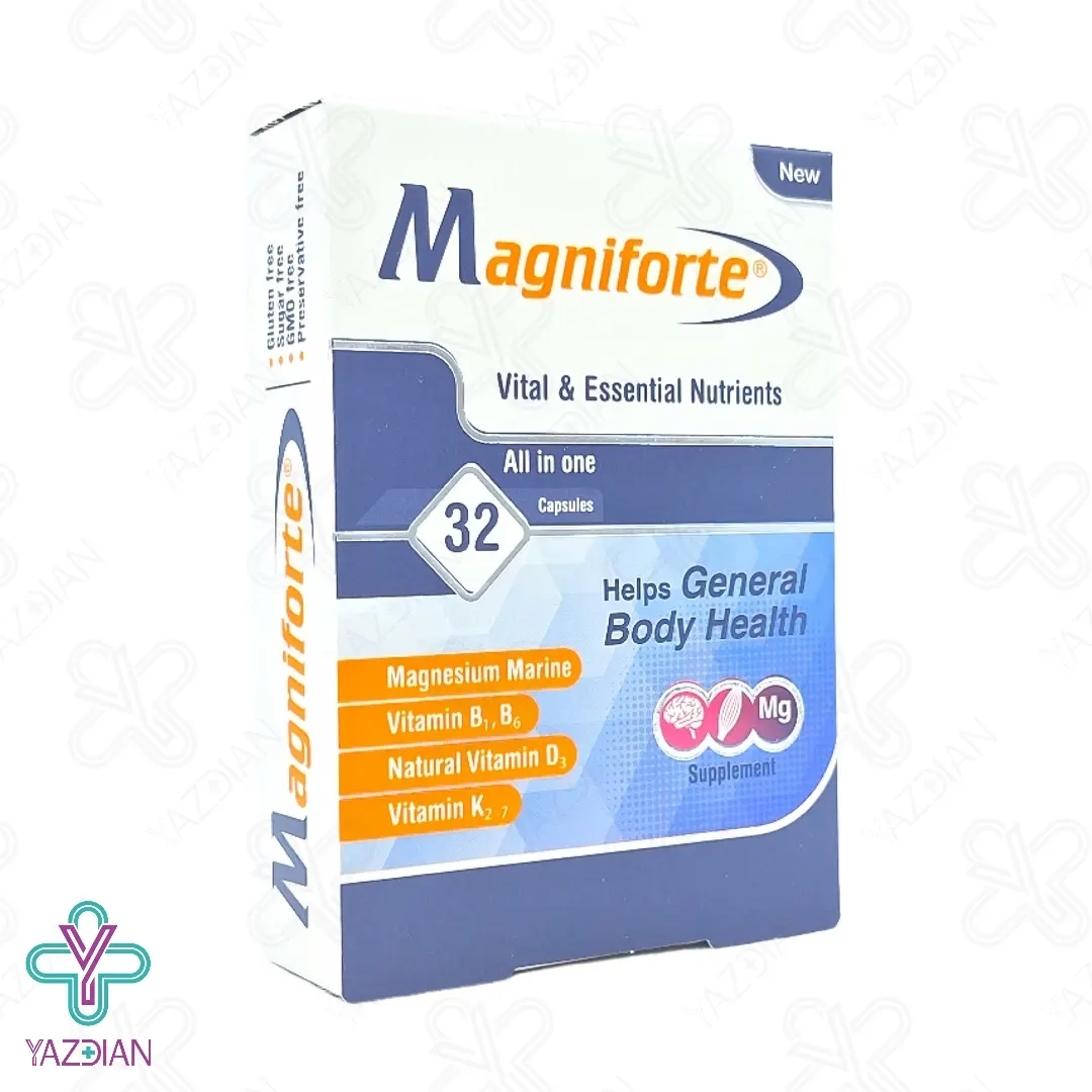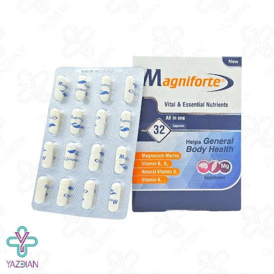 کپسول مگنیفورت یک مکمل غذایی است که حاوی ویتامین های ب ۱،ب۶، د۳ و کا۲ است که مناسب مصرف عموم مردم می باشد.