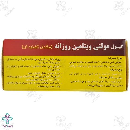 کپسول نرم مولتی دیلی حاوی ویتامینهای خانواده ب، آ، کا و دیگر ویتامین های مهم می باشد که علاوه بر تقویت کنندگی سیستم دفاعی بدن، باعث افزایش انرژی بدن نیز می گردد. اغلب مولتی ویتامین ها دارای املاح معدنی مانند آهن، کلسیم و روی می باشند، اما در دوز های متفاوت تهیه می شوند.