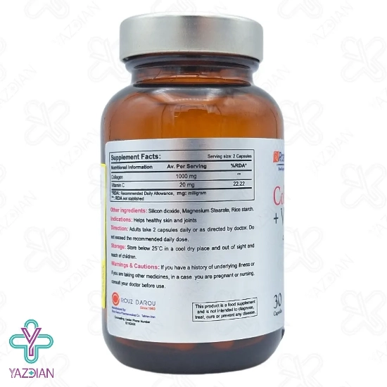 کپسول کلاژن پلاس با ویتامین سی رزاویت: کلاژن یکی از فراوانترین پروتئینها در بدن است و بخش بزرگی از پوست، مو و ناخنها را میسازد. از لحاظ فنی یک پلی پپتید، کلاژن شامل تلفیقی از اسیدهای آمینه مانند پرولین و گلیسین است، که در همهی بافتهای همبند در بدن وجود دارد.کلاژن یک اسید آمینه با زنجیره بلند و فراوانترین پروتئین در بدن است. از اسیدهای آمینهی منحصر به فردی مانند گلیسین، پرولین، هیدروکسی و آرژنین تشکیل شده و در طبیعت منحصرا در بافت حیوانی، به خصوص استخوانها و بافت همبند یافت میشود.مسئول خاصیت ارتجاعی پوست و قدرت مو و ثبات بافت همبند است. در واقع، پروتئین کلاژن تا ۳۰ درصد از کل پروتئین بدن و ۷۰ درصد از پروتئین پوست را میسازد.تولید کلاژن طبیعی بدن با افزایش سن کاهش مییابد و بسیاری از عوامل مانند سبک زندگی مدرن (مانند استرس، رژیم غذایی نامناسب، عدم تعادل سلامت روده، و غیره) میتواند توانایی بدن در ساخت کلاژن را کاهش دهد.ویتامین C در بدن در تشکیل کلاژن در استخوان ها، غضروف، عضله و رگ های خونی اهمیت داشته و نیز در جذب آهن نیز شرکت می کند.تأثیر ویتامین C در تشکیل کلاژن مهم ترین نقش آن است.