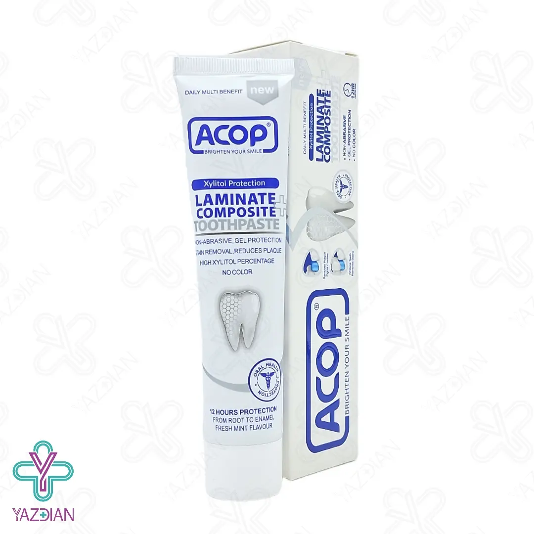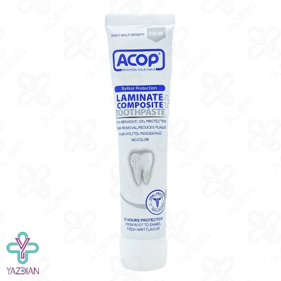 خمیر دندان مخصوص دندان ها لمینت و کامپوزیت آکوپ (Acop Laminate and Composite Toothpaste 90 gr) از سایندگی دندان ها جلوگیری می کند.
