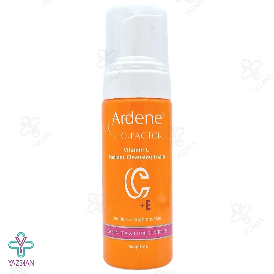 فوم شوینده و شفاف کننده صورت سی فکتور آردن - 150 میلی لیتر (Arden Vitamin C Radiant Cleansing Foam 150 g) یک فوم شوینده عالی جهت پاکسازی پوست از انواع آلودگی های محیطی، آرایش و چربی ها می باشد که PH کاملا کنترل شده ای داشته و فاقد مواد صابونی می باشد. این شوینده صورت با برخورداری از ویتامین ای، نیاسینامید، شیرین بیان، عصاره چای سبز، ویتامین سی و عصاره پرتقال، روند بروز علائم پیری پوست را به تاخیر انداخته و با حفظ رطوبت پوست، درخشندگی، شفافیت و قوام پوست را دو چندان می کند.