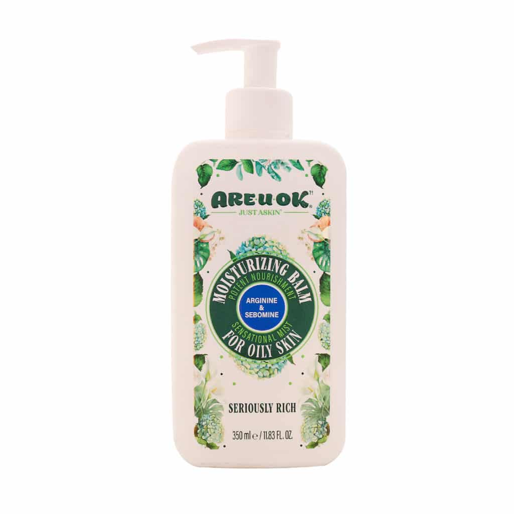 بالم مرطوب کننده پوست چرب آرژنین پمپی آر یو اوکی - 350 میلی لیتر (Are U Ok Pump Moisturizing Balm For Oily Skin 350 ml) با بهره گیری از ترکیبات ارزشمند و مغذی مثل آرژنین، سبومین، شی باتر در ترکیبات خود، خاصیت رطوبت رسانی قدرتمندی دارد و کمک به رفع پوسته پوسته شدن پوست می کند. غنی بودن این بالم از ترکیبات گیاهی باعث شده است تا خاصیت التیام بخشی داشته باشد و التهابات و قرمزی های پوستی را تسکین دهد.