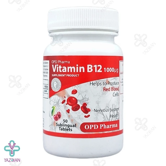 قرص زیرزبانی ب 12 او پی دی فارما (OPD Pharma B12 1000 Vitamin 50 Sublingual Tabs) با دارا بودن 1000 میکروگرم ویتامین B12 در ترکیبات خود، می تواند ویتامین B12 مورد نیاز بدن را تأمین نماید و یکی از بهترین دارو های تقویتی بدن می باشد. این مکمل همچنین ضمن اثرگذاری در تقویت سیستم عصبی، به ساخت گلبول قرمز کمک کرده و از بروز کم خونی در بدن ممانعت به عمل می آورد.