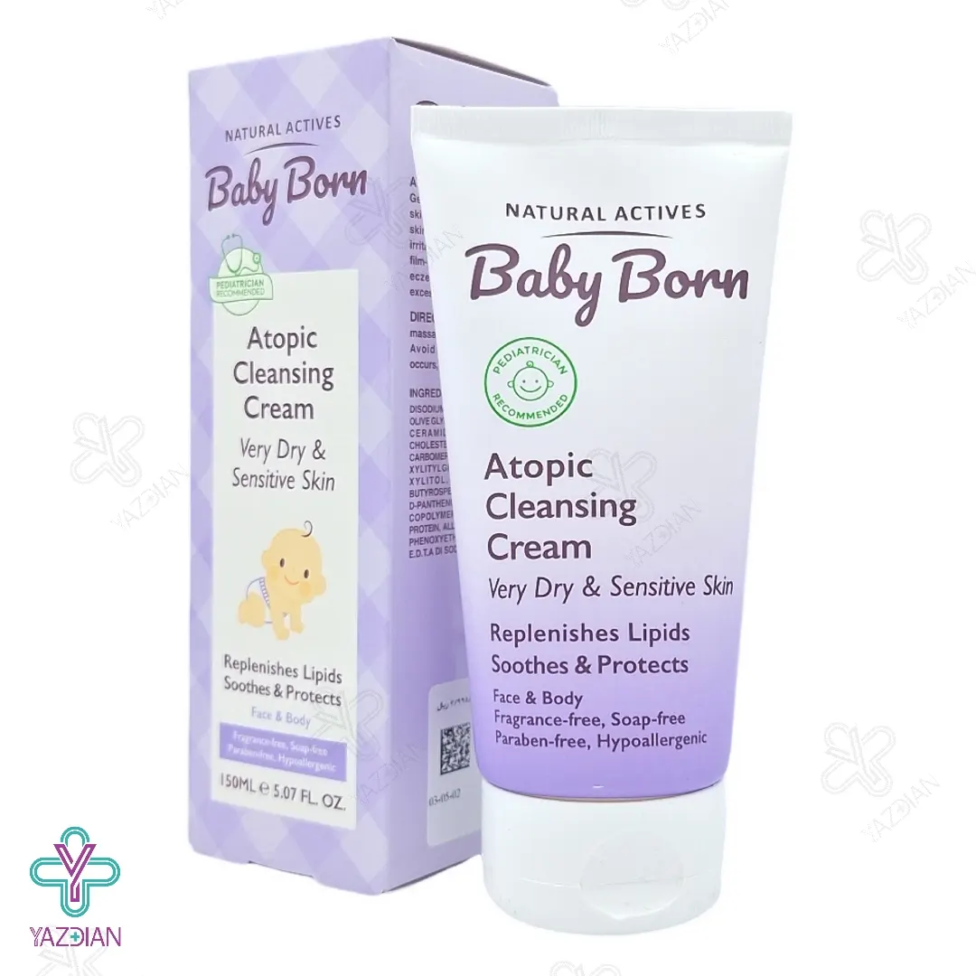 شوینده کرمی پوست خشک و حساس بیبی برن - 150 میلی لیتر (Baby Born Atopic Cleansing Cream Very Dry & Sensitive Skin 100 ml)از دسته محصولات مراقبت از پوست کودک می باشد و یک پاک کننده ملایم و عالی برای پوست حساس کودکان و نوزادان است که ضمن حفظ چربی های دفاعی پوست، با فرمولاسیون مغذی و ویژه خود، پوست را تغذیه رسانی می کند.