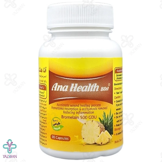 کپسول آنا هلث BDA بهتا دارو (Behta Darou Ana Health BDA 30 Capsules) در درمان زخم های ایجاد شده به دلیل جراحی و سوختگی بسیار تاثیر گذار است. این محصول هم چنین دارای خواص ضد التهابی است و خون مردگی، کبودی و دردهای ایجاد شده به خاطر آرتروز را نیز برطرف می کند. این مکمل رژیمی غذایی در بهبود و احیای اسکار بسیار موثر و عالی عمل کرده هم چنین وجود بروملین در این محصول درمان زخم های بدن را بسیار سرعت می بخشد.