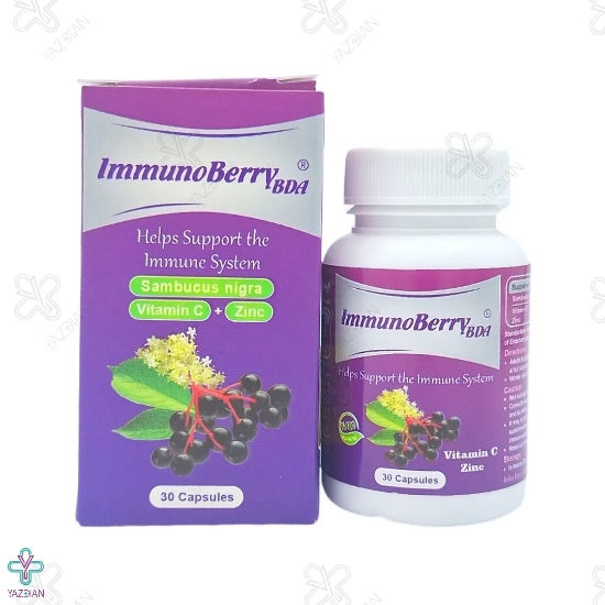 کپسول تقویت سیستم ایمنی ایمونوبری بهتا دارو - 30 عددی (Behta Daru Immunoberry BDA 30 Caps) یک مکمل بسیار عالی برای تقویت سیستم ایمنی بدن می باشد. این کپسول صد در صد گیاهی است و حاوی عصاره ی خشک میوه گیاه الدربری و ویتامین C و زینک می باشد. استفاده از آن در پیشگیری از بیماری های ویروسی همچون سرماخوردگی و آنفولانزا موثر است و در صورت ابتلا به این بیماری ها باعث بهبودی سریع تر علائم می شود.