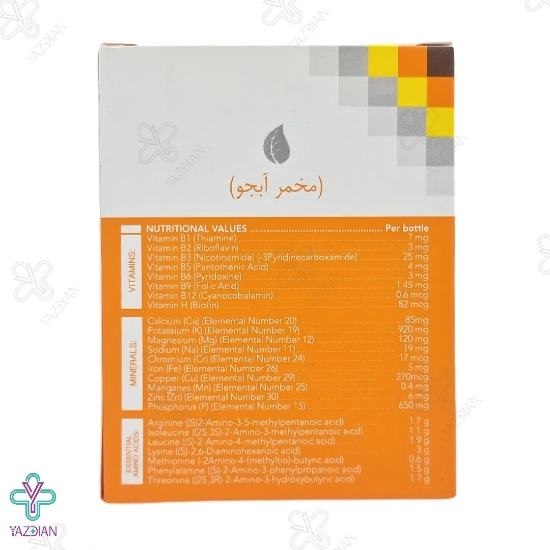 قرص مخمر آبجو سرشار از مواد مغذی مثل ویتامین های گروه ب و مواد معدنی مثل سلنیوم و کروم بوده و نیز دارای پتاسیم و منیزیم است.