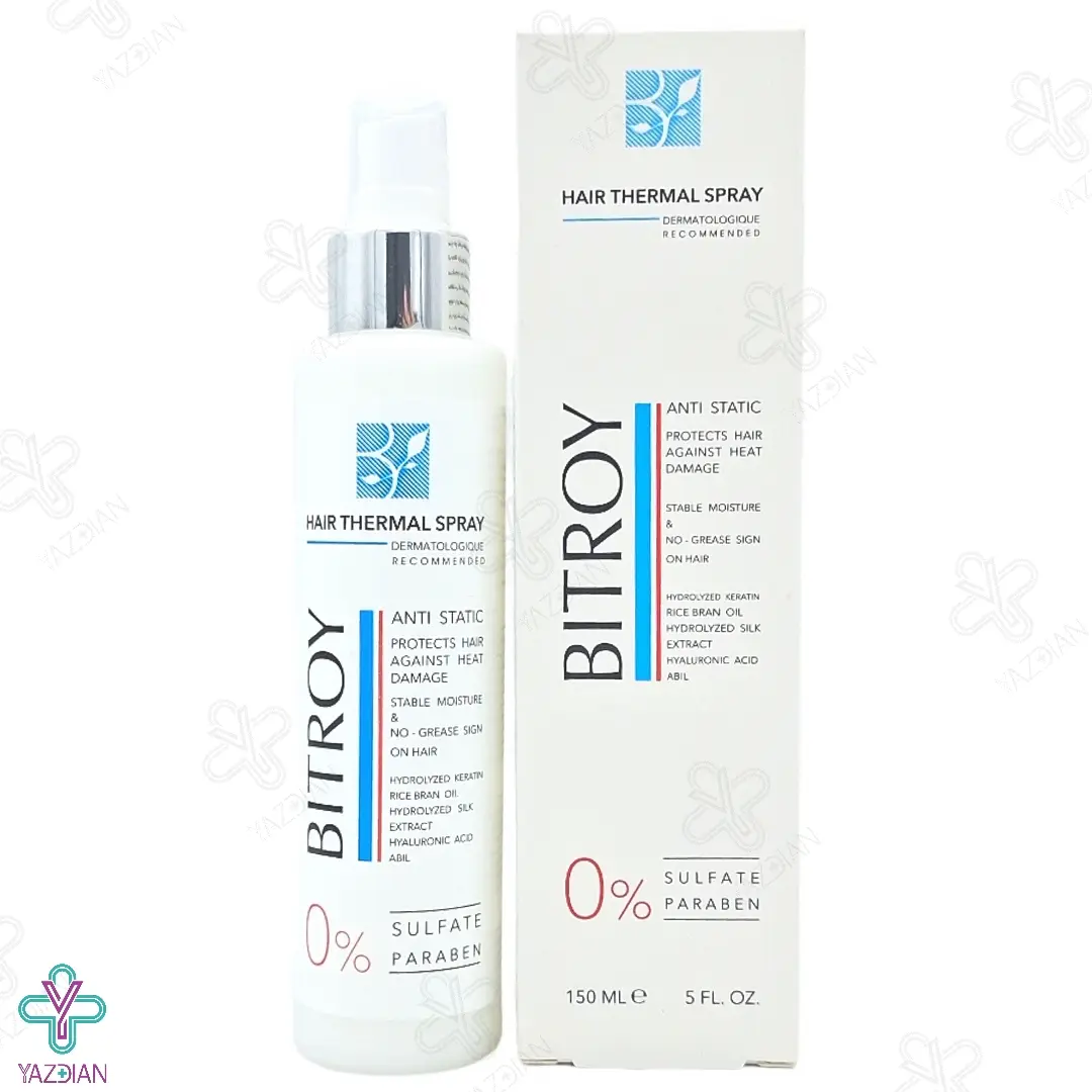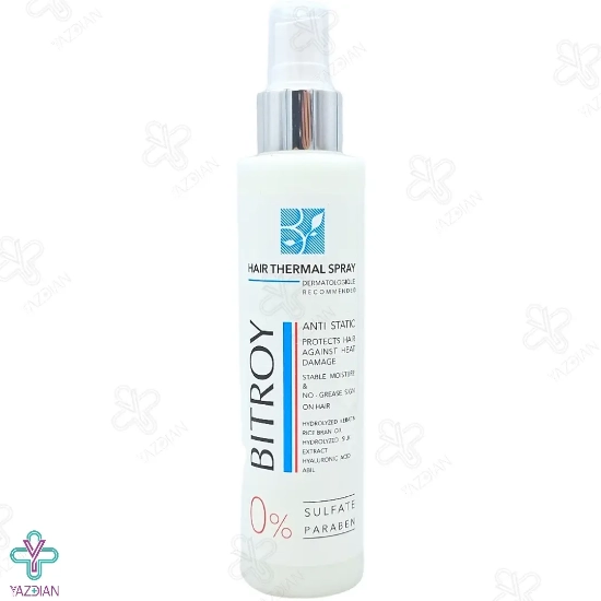 اسپری نرم کننده و محافظ حرارتی مو بیتروی (Bitroy Hair Conditioner And Thermal Protector Spray 150 ml) از دسته محصولات نرم کننده و حالت دهنده مو بوده و با برخورداری از اثرات محافظتی فوق العاده بالا، می تواند از موها در برابر آسیب های ناشی از اشعه های مخرب نور خورشید و دستگاه های حرارتی و حالت دهنده مو محافظت نماید و ضمن بازگرداندن رطوبت از دست رفته موها، شفافیت و درخشندگی موها را افزایش دهد.