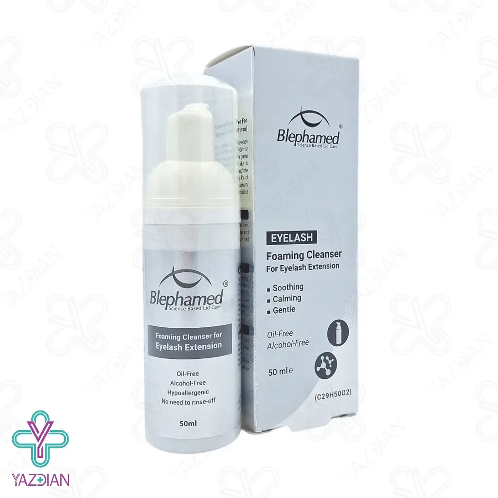 مواد آرایشی و چربی پوست از عواملی است که سبب خراب و تضعیف شدن چسب اکستنشن می شود و مهم ترین نکته در افزایش ماندگاری چسب اکستنشن شست و شوی منظم و مناسب آن ها است و نیز عدم پاک سازی موجب به وجود آمدن عفونت، خارش و قرمزی پلک می شود و به همین دلیل استفاده از یک محصول مناسب توصیه می شود، فوم پاک کننده آرایش چشم مناسب مژه اکستنشن بلفامد (BlephamedEyelash Extension Foam cleanser - 50 ml ) نخستین پاک کننده ی تخصصی مخصوص مژه های اکستنشن است، از دیگر ویژگی های این محصول این است که نیازی به شست و شو با آب ندارد و به بهترین شکل مژه ها را پاک سازی می کند، این فوم هم چنین مورد تایید چشم پزشکان و مرکز تحقیقات پوست و مو بوده و بهترین پاک کننده ی آرایش چشم و چربی های پلک و مژه است، در این فوم از مواد مضری مانند الکل، پارابن، اسانس، رنگ و مواد حساسیت زا به هیچ عنوان استفاده نشده است به همین دلیل مصرف آن هیچ مشکلی ایجاد نکرده و باعث حفظ زیبایی اکستنشن مژه و سلامتی چشم ها می شود و هم چنین با انواع پوست سازگار است.