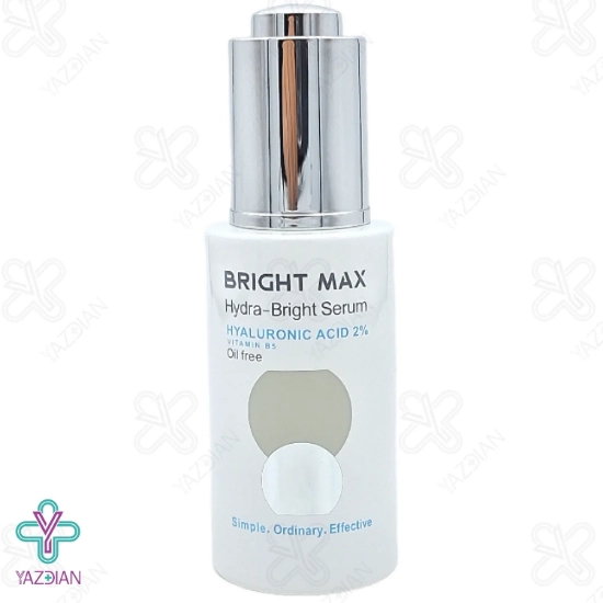 سرم هیالورونیک اسید 2 درصد برایت مکس - 30 میلی لیتر (Bright Max Hydra Bright Serum 30 Ml) از بین برنده قدرتمند چین و چروک های پوستی و لک و تیرگی های ناشی از کمبود آب پوست می باشد. همچنین با تحت کنترل قرار دادن تولید ملانین سازی پوست، در رفع هایپرپیگمانتاسیون های پوستی نقش موثری داشته و از بروز آن ها پیشگیری می کند. بافت سبک این سرم سبب شده است تا به سرعت جذب پوست شود و به هیچ وجه روی پوست حس سنگینی ایجاد نکند. بعلاوه لایه های محافظتی پوست را تقویت کرده و با تثبیت پروتئین ها و ترمیم بافت سلولی، کمک به شادابی و طراوت هر چه بیشتر پوست می کند.