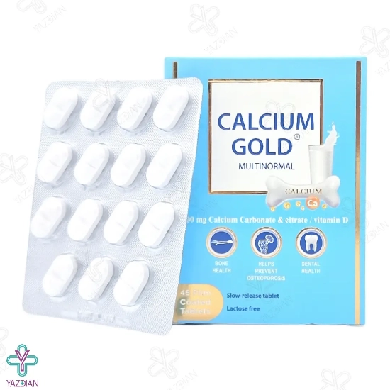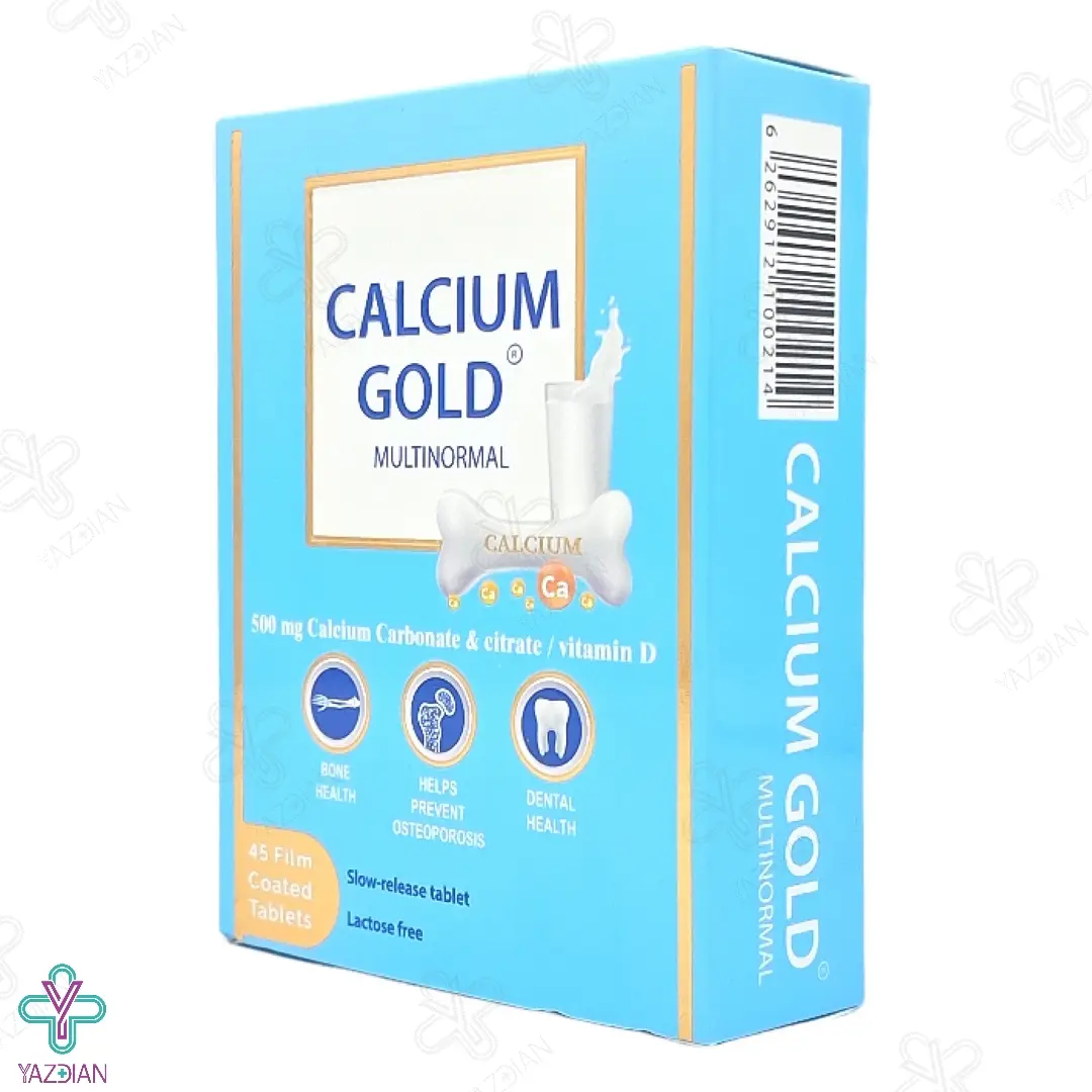 قرص کلسیم منیزیم دی کلسیم گلد (Shahab Darman Calcium Gold Multinormal 45 Tablets) با دارا بودن کلسیم، منیزیم، ویتامین D3 و ویتامین K2 در ترکیبات خود می تواند سلامت استخوان ها و دندان ها را حفظ کرده و تقویت نماید و همچنین از ابتلا به پوکی استخوان جلوگیری کند. این قرص یکی از بهترین داروها برای تقویت استخوان و مفاصل می باشد.
