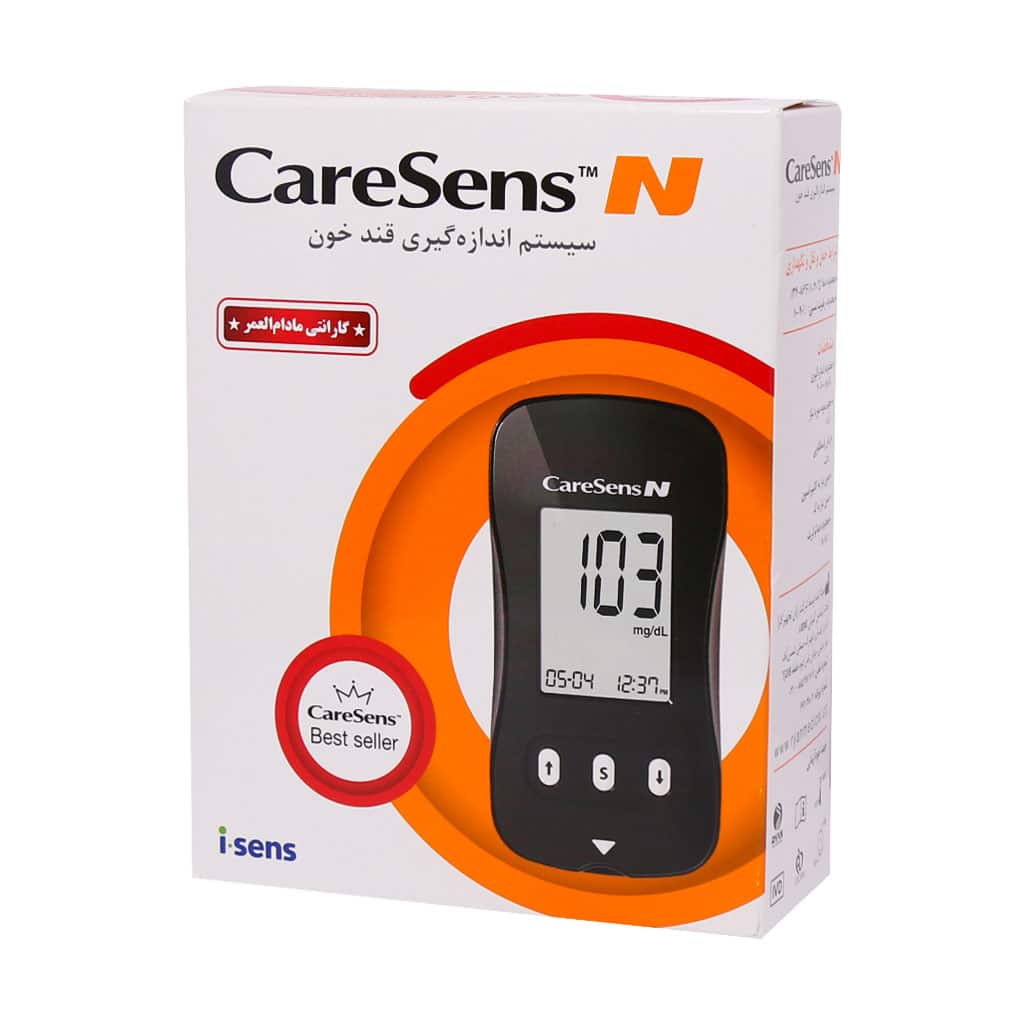 دستگاه تست قند خون کرسنس N (care sens N blood Glucose Monitoring system) دارای طراحی ساده و پسندیده ای می باشد که هر فرد بدون داشتن دانش فنی خاص می تواند از این محصول استفاده کند این محصول در عرض 5 ثانیه مقدار قند خون را نشان می دهد و نتایج سریع و دقیقی را در اختیار کاربر قرار می دهد جهت استفاده از این دستگاه به ./5 میکرو متر خون نیاز می باشد دستگاه تست قند خون کرسنس دارای ذخیره سازی و دانلود داده های به دست آمده می باشد که تا 1000 مورد از نتایج تست ها را ذخیره می کند و دارای زنگ های یاد آوری جهت تست بعد از وعده غذایی می باشد دستگاه تست قند خون دارای صفحه نمایشگر می باشد که ساعت، تاریخ، روز، ماه را نشان داده و خواندن آن بسیار آسان و ساده می باشد قلم این محصول دارای شش درجه تنظیم عمق سوراخ می باشد که به راحتی جهت استفاده آماده می شود روش استفاده جهت اندازه گیری قند خون در این محصول Biosensor می باشد که گلوکز خون با مواد شیمیایی موجود در نوار تست واکنش داده و یک جریان الکتریکی ضعیف تولید می کند سپس دستگاه با اندازه گیری جریان، مقدار قند خون را تعیین می کند و با این دستگاه می توان از نقاط مختلف بدن قند خون را اندازه گیری کرد نوار های Care Sensn فقط برای این دستگاه مناسب می باشد.