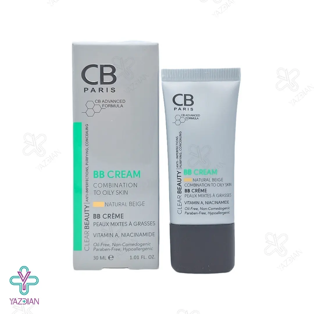 بی بی کرم فاقد چربی سی بی پاریس - بژ طبیعی (CB Paris BB Cream 30 ml) از دسته لوازم آرایشی بهداشتی می باشد که عملکرد فوق العاده ای در کنترل ترشح سبوم چربی داشته و منافذ باز پوستی را جمع می کند. این محصول جذب بالایی داشته و اصلا روی پوست ایجاد حس سنگینی و چربی نمی کند. این کرم محصولی چند منظوره است و می توان با خرید یک محصول، ترکیبی از محصولات پرایمر، کرم پودر، کانسیلر و ... را همزمان داشت. بعلاوه کاور بالایی داشته و با رنگ بژ طبیعی خود، پوستی صاف و یکدست به شما می دهد. این محصول کاملا سازگار و مناسب پوست های چرب و جوش دار می باشد و با تنظیم چربی صورت، از بروز جوش و آکنه جلوگیری می کند. این محصول با برخورداری از خواص آنتی اکسیدانی، فعالیت رادیکال های آزاد پوست را مختل می کند.