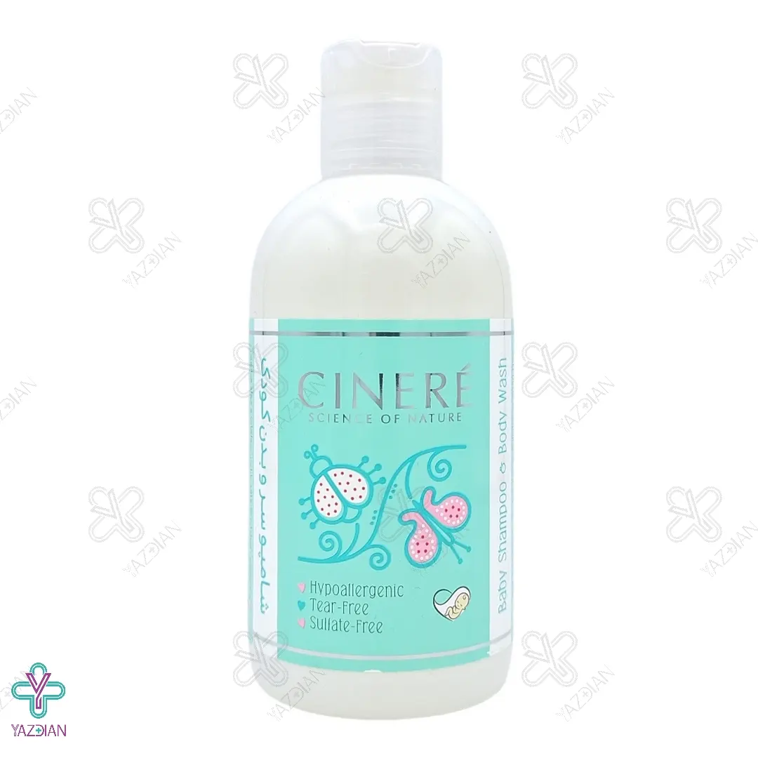 شامپو سر و بدن نوزادان سینره (Cinere Baby Shampoo And Body Wash 250 ml) از دسته محصولات مراقبت از موی کودک بوده و یک محصول مناسب برای شستن سر و بدن نوزادان تولید شده است. یکی از ویژگی های این شامپو این است که در آن پارابن، سولفات و مواد صابونی به کار نرفته است و به همین دلیل هیچ نوع حساسیتی در بدن نوزاد ایجاد نمی کند.