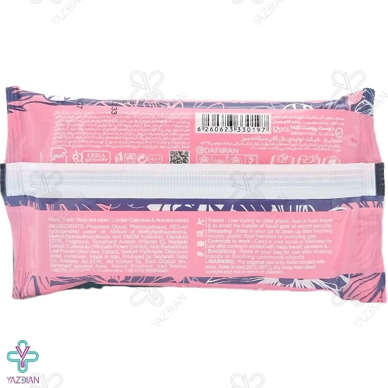 دستمال مرطوب پاک کننده صورت، دست و بدن دافی (Dafi Hand And Face Wet Wipes 12 PCS) ضمن دادن رطوبت به پوست و ضد عفونی کردن آن، باعث پاکسازی پوست از هر گونه آلودگی می شود و پاکی، نرمی و لطافت خاصی به پوست می بخشد.