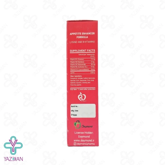 شربت اشتها آور پدیاموند دیموند - 120 میلی لیتر (Daymond Pedia Mond Appetite Syrup Dor Kids 120 ml) یکی از بهترین دارو های اشتها آور کودکان می باشد که با بهره گیری از ویتامین های گروه ب و آمینو اسید لیزین، کمک به افزایش متابولیسم کربوهیدرات، پروتئین و چربی ها می شود. این محصول عوارض جانبی ای مثل یبوست و خواب آلودگی بوجود نیاورده و فاقد سیپروهپتادین است.