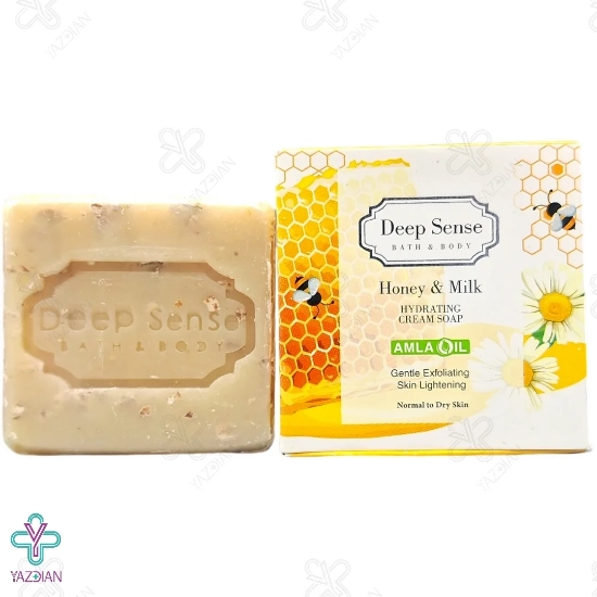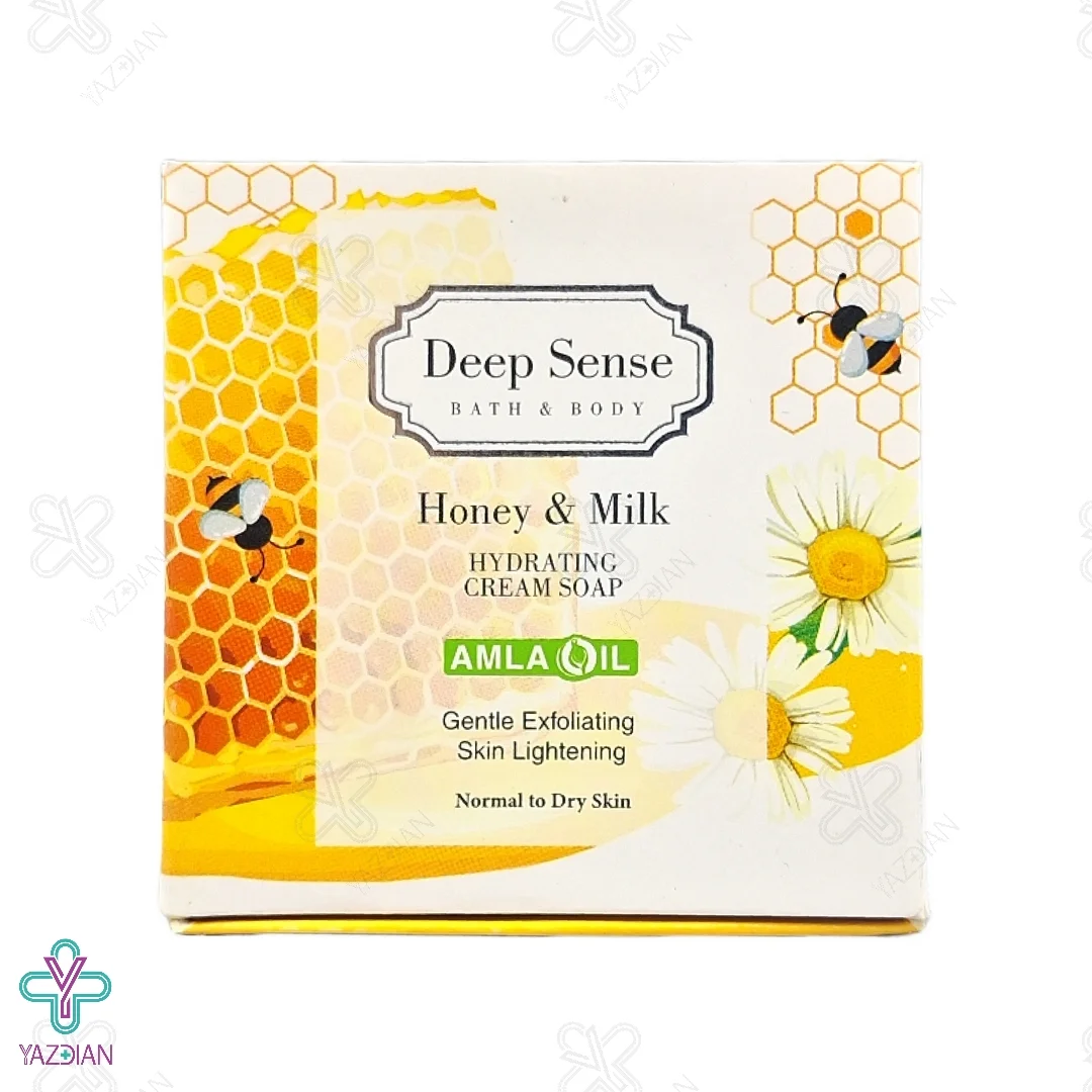 صابون کرمی آبرسان شیر عسل دیپ سنس (Deep sense moisturizing honey cream soap 75 gr) پوست را از انواع آلودگی ها و مواد آرایشی پاک می کند. یکی از ویژگی های این محصول این است که یک لایه ی حفاظتی در پوست به وجود آورده که مانع از بخار شدن رطوبت از سلول های آن شده و به همین دلیل از خشک شدن پوست پیشگیری می کند.