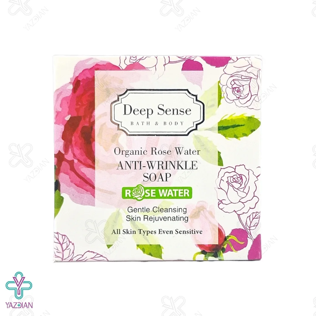 زمانی که پوست را از انواع آلودگی ها و مواد آرایشی و عرق پاک می کنید، پوست دوباره احیا و باز سازی می شود. برای این پاک سازی استفاده از یک محصول مناسب برای پوست توصیه می شود. صابون گلاب دیپ سنس مناسب پوست های دارای چروک (Rose Deep Sense Soap Suitable for Wrinkle skin 75 gr) پوست دست و صورت را از انواع آلودگی ها و مواد آرایشی تمیز می کند. این محصول سبب تقویت پوست شده و علاوه بر این که باعث خشکی پوست نمی شود، از به وجود آمدن چروک و پیری زود رس پوست نیز جلوگیری می کند.