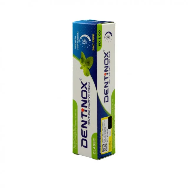 چسب دندان دنتی نوکس (Dentinox Denture Fixative Cream - 40 gr) باعث بهتر چسبیدن دندان مصنوعی به لثه شده و به همین دلیل افراد می توانند بسیار آسان و راحت به خوردن و آشامیدن پرداخته و هیچ نوع نگرانی بابت جدا شدن دندان مصنوعی نداشته باشند، از دیگر ویژگی های این محصول این است که در آن زینک به هیچ عنوان استفاده نشده است به همین دلیل پس از مصرف آن، از به وجود آمدن حساسیت در شخص جلوگیری می کند، این چسب هم چنین دارای قدرت چسبندگی بسیار بالایی بوده و 12 ساعت قابلیت چسبندگی دارد، هم چنین از به وجودآمدن زخم و التهاب در لثه جلوگیری می کند، این محصول مانع از نفوذ خوراکی های بسیار ریز و کوچک به زیر دندان ها شده و در نتیجه باعث رعایت بهداشت و عدم ایجاد عفونت می شود.