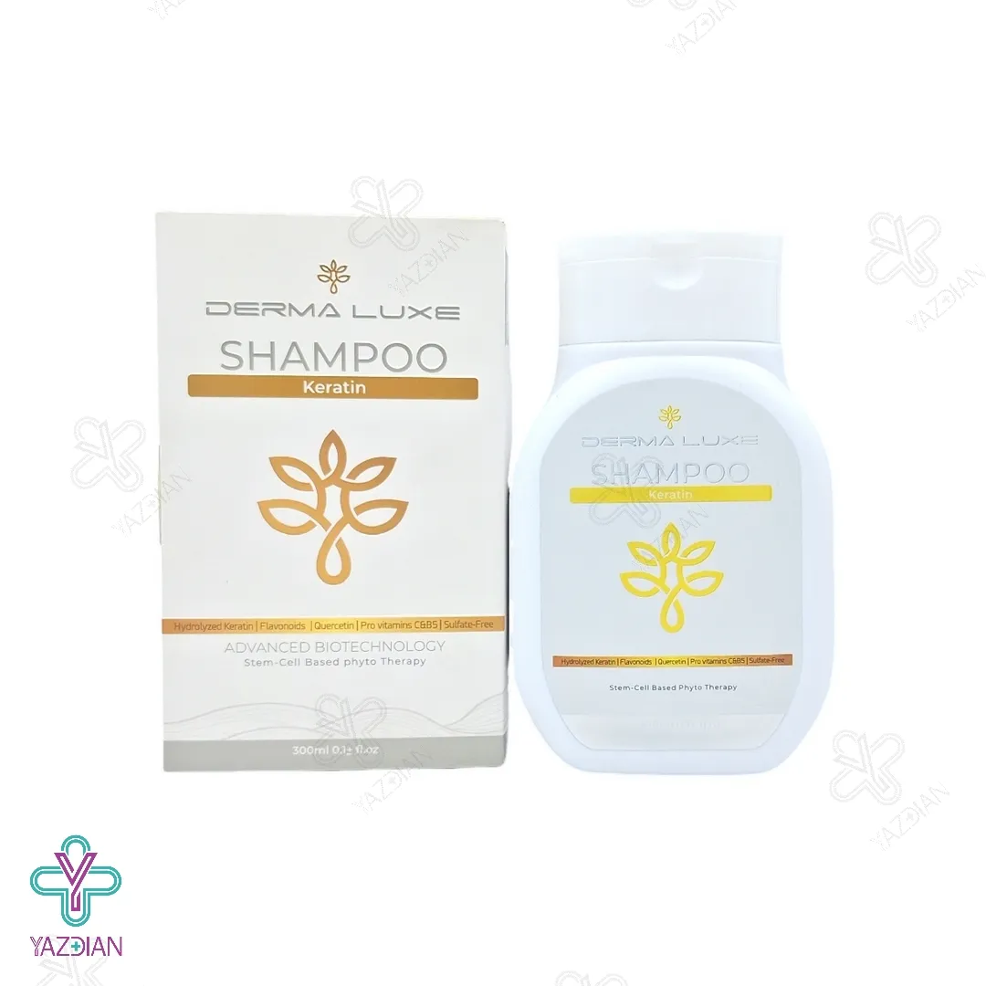 شامپو کراتین فاقد سولفات درمالوکس (Derma Luxe Keratin Shampoo 300 ml) دارای کراتین هیدرولیز شده به همراه ویتامین های C و B5 بوده و می تواند با دارا بودن خواص تقویت کنندگی، موها را ترمیم و بازسازی نماید و رشد مجدد آن ها را تحریک کند. این محصول همچنین نرمی، لطافت و درخشندگی در موها را افزایش داده و ریشه های مو را استحکام می بخشد.