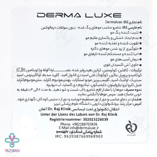 شامپو بدون سولفات درمالوکس مناسب موهای رنگ شده (Derma Luxe Shampoo For Colored Hair 300 ml) محصولی است که از هر گونه مواد شیمیایی، پارابن و سولفات عاری بوده و می تواند با بهره گیری از ترکیبات آبرسان فوق العاده خود، رطوبت موها را به خوبی تأمین کرده و این رطوبت را برای مدت زمان طولانی حفظ نماید.