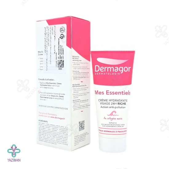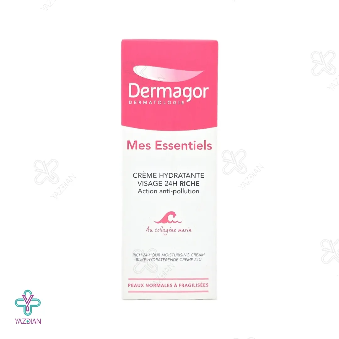 کرم مرطوب کننده مغذی 24 ساعته ریچ درماگور (Dermagor Mes Essentiels Cream Hydratante Visage 24 H Riche) با بهره مندی از فرمولاسیون منحصر به فرد خود می تواند به عنوان یک محصول مرطوب کننده قوی مورد استفاده قرار گیرد و ضمن تغذیه و تقویت پوست و با بالا بردن خاصیت ارتجاعی پوست، از خشکی و افتادگی پوست جلوگیری کرده و باعث جوانسازی و زیبایی پوست شود.
