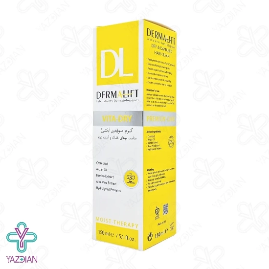 کرم موهای خشک و آسیب دیده ویتادرای درمالیفت - 150 میلی لیتر (Dermalift Vita Dry and Damage Hair Cream 150ml) فرموله شده جهت استفاده پس از حمام می باشد و نیاز به آبکشی ندارد. این کرم از دسته محصولات مراقبت از مو می باشد که با بهره گیری از روغن کرامب، به خوبی ساقه مو ها را آبرسانی و مرطوب می کند و از بروز موخوره و گره خوردگی جلوگیری می کند. بافت این محصول به گونه ای است که به سرعت جذب مو می شود و با ایجاد یک لایه محافظتی گسترده روی موها، از موها در برابر حرارت ناشی از آفتاب، سشوار، اتو مو و ... محافظت بالایی می کند.