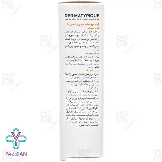 کرم دور چشم ویتامین C درماتیپیک، علاوه بر ویتامین C حاوی ترکیبات مغذی و عصاره های گیاهی است که پوست اطراف چشم را تغذیه و با تحریک کلاژن سازی باعث جوان سازی و رفع تیرگی ها و چین و چروک اطراف چشم می شود.
