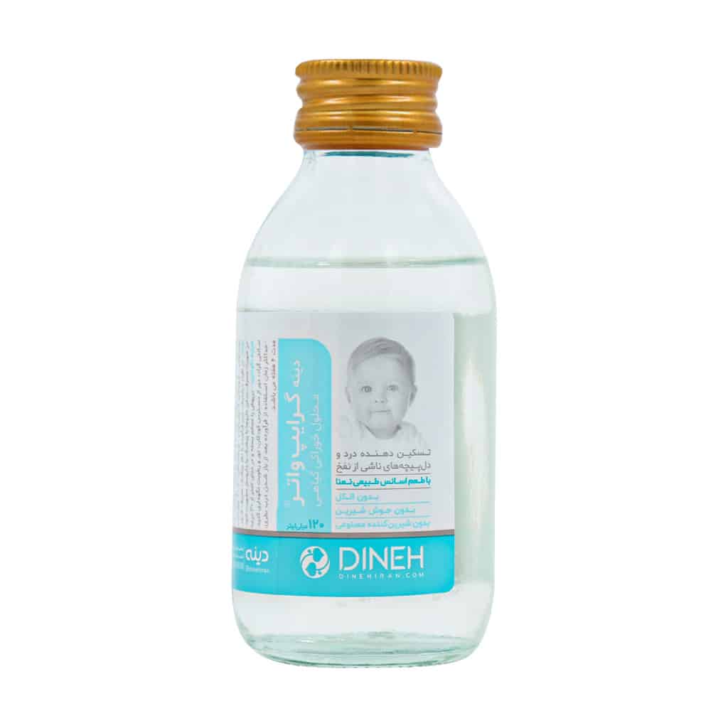 شربت ضد نفخ گرایپ واتر - 120 میلی لیتر (Dineh Gripe Water Herbal Syrup) حاوی ترکیباتی است که از آب، عصاره گیاهانی که ضد نفخ هستند و جوش شیرین تولید می شود و والدین برای بهبود کولیک و مشکلات گوارشی در نوزادان استفاده می کنند زیرا والدین باور دارند که کولیک در نوزادان به علت اختلالاتی در سیستم گوارش یا به علت نفخ معده می باشد. به علت مزه شیرین شربت گریپ واتر بسیاری از نوزادان آن را دوست دارند.