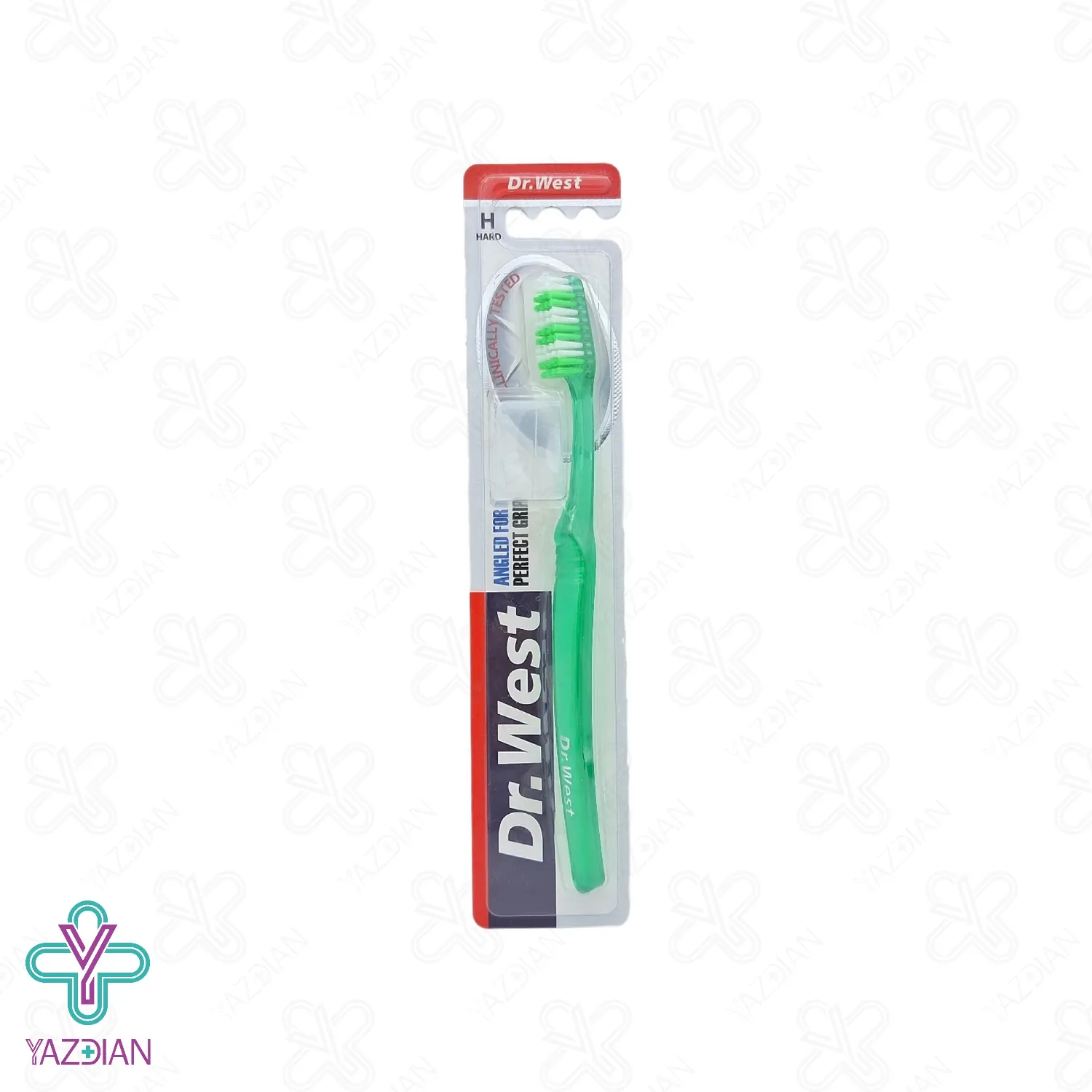 مسواک دکتر وست - برس سخت (Dr. West toothbrush - hard brush) یکی از بهترین مسواک های موجود در بازار می باشد که ساخت کشور ایران بوده و کیفیت قابل قبولی در مقایسه با نمونه های خارجی خود دارد. مسواک دکتر وست به هیچ وجه به مینای دندان و لثه ها آسیب نمی زند و از زبری مناسبی جهت پاکسازی دندان ها و از بین بردن لکه های دندانی برخوردار است. این محصول با طراحی آرگونومیکی که دارد، استفاده از آن را آسان می کند. بعلاوه دسته انعطاف پذیری دارد و به راحتی شکسته نمی شود.