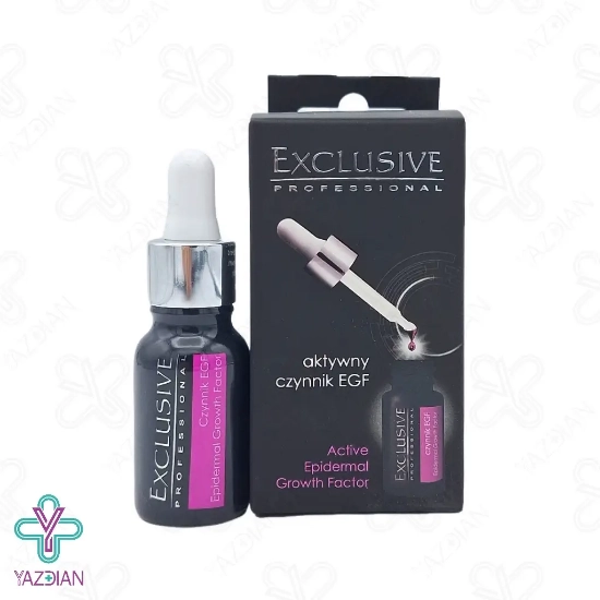 سرم ضد چروک صورت EGF اکسکلوسیو (EGF Exclusive Anti – wrinkle facial serum – 15 ml) دارای EGF بوده که عنصر رشد پوستی می باشد و یک نوع پروتئین بوده که در بدن انسان وجود دارد این پروتئین موجب تحریک رشد سلولی شده و در بازسازی ، کلاژن سازی، تغذیه و رطوبت رسانی پوست موثر می باشد EGF به صورت عمقی به لایه خارجی پوست نفوذ کرده و موجب تقسیم سلول در آن ناحیه می شود و با تحریک سلول سازی در آن ناحیه موجب شده تا سلول های آسیب دیده و فرسوده از بین رفته و سلول های جدید جایگزین شود این محصول موجب درمان انواع زخم ها شده و در جوان سازی پوست بسیار موثر می باشد سرم ضد چروک اکسکلوسیو دارای خاصیت التیام بخشی بوده و موجب لطافت پوست نیز می شود و موجب بهبود استحکام و خاصیت ارتجاعی پوست می شود و چین و چروک های پوست را کاهش می دهد.