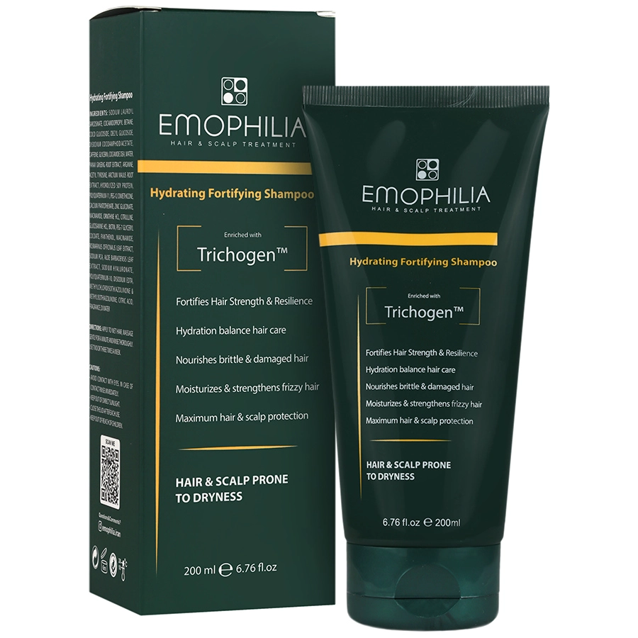 شامپو تقویت کننده موهای خشک اموفیلیا - 200 میلی لیتر (Emophilia Hydrating Fortifing Shampoo 200ml) با بهره گیری از تریکوژن در فرمولاسیون خود، استحکام و قوام پوست و موی سر را بالا برده و آن ها را تغذیه رسانی و تقویت می کند. بعلاوه مو های آسیب دیده را ترمیم و بازسازی کرده و قابلیت ارتجاعی ساقه مو ها را بالا می برد؛ همچنین بهره گیری از ترکیبات مرطوب کننده و آبرسان، باعث شده است تا به طرز اصولی ساقه مو ها رطوبت رسانی شده و از خشکی، وزی و شکنندگی آن ها پیشگیری شود. چنانچه به صورت منظم از این محصول در روتین مو های خهود استفاده شود، شاهد تجربه دلپذیر، با حس طراوت و تازگی موهایتان خواهید بود.