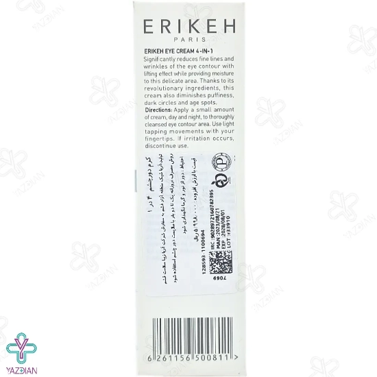 کرم ضد چروک 4 در 1 اریکه (erikeh eye contour cream 4 in 1 30 ml) یک محصول بسیار مناسب برای افرادی است که می خواهند تا چین و چروک، پف و تیرگی دور چشم خود را برطرف کنند. این محصول به گونه ای تولید شده است که باعث آبرسانی و مرطوب شدن اطراف چشم شده و در نتیجه از افتادگی پوست هم جلوگیری می کند. از دیگر ویژگی های این کرم ضد چروک این است که از پوست در مقابل اشعه های مضر خورشید حفاظت می کند.